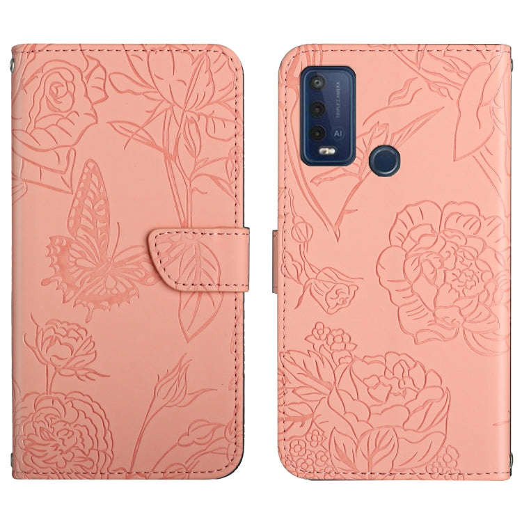 Funda de Cuero En Relieve para Wiko Power U30 Siente la Piel de la Mariposa (Rosa)