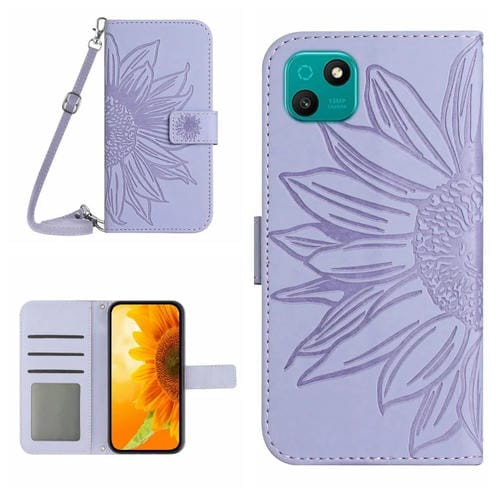 Funda de Cuero Flip para Wiko T10 Skin Feel con Cordón y Diseño Sun Flower (Púrpura)
