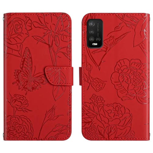 Funda de Cuero para Wiko Power U10 / U20 con Relieve Peonía y Mariposa (Rojo)