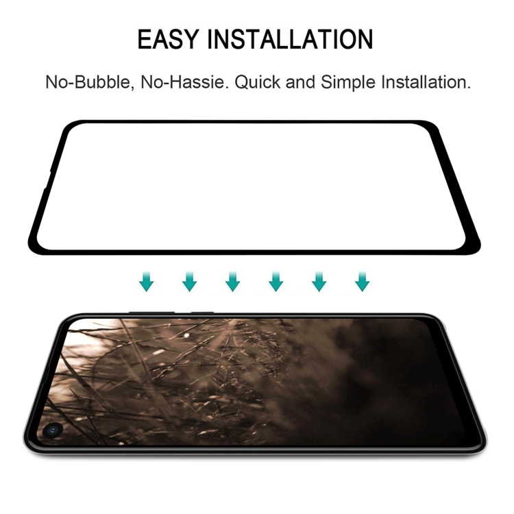 3. Alinee cuidadosamente el vidrio a la pantalla.