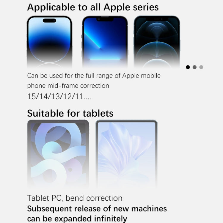 Es compatible con Teléfonos Móviles y tabletas de hasta 10 pulgadas que requieren corrección de deformaciones en el Marco y mantenimiento de presión en la Pantalla.