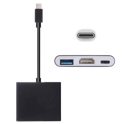 Adaptador USB-C 3.1 Macho a USB-C 3.1 Hembra, HDMI Hembra y USB 3.0 Hembra (Negro)