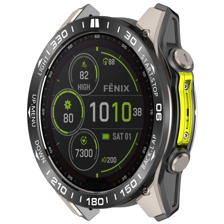 Anillo protector de acero inoxidable para reloj Garmin Tactix 8 AMOLED de 51 mm, estilo Speed, color negro y blanco.