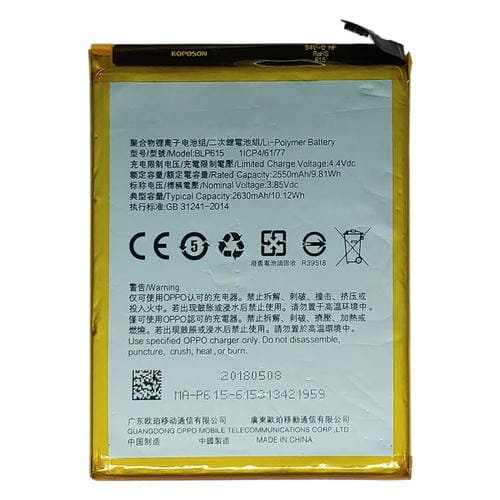 • 1x Batería Oppo A37 BLP601 Polímero de Litio (2023)