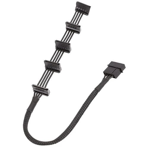 • 1x Cable grande de jaula de Disco Duro SATA de 1 a 5 con rejilla de manga de 4 pines 40cm 18AWG