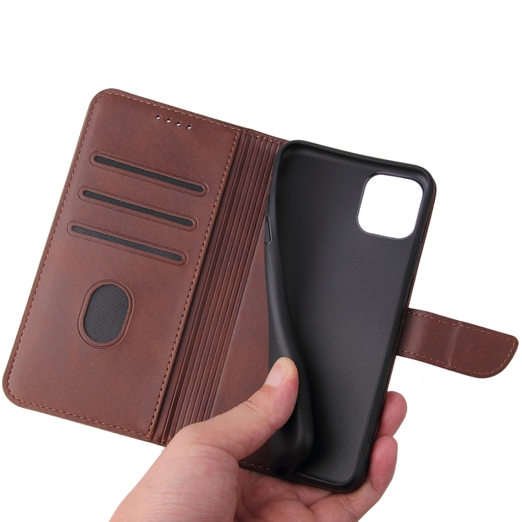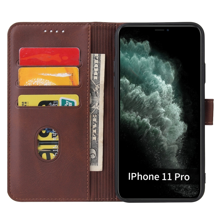 Funda de Cuero Flip Horizontal para iPhone 11 Pro Max con Soporte, Tragamonedas y Billetera (Brown)