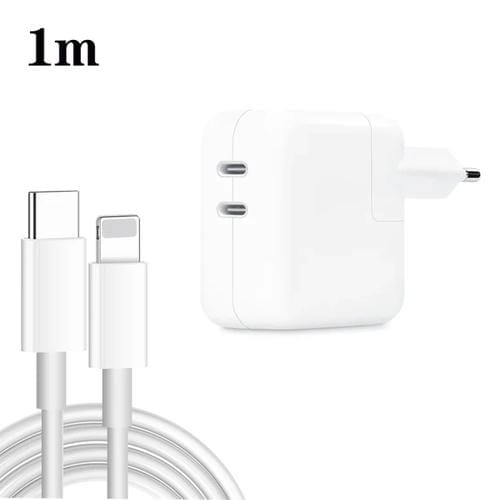 Cargador 35 W PD3.0 USB-C doble puerto con cable Type-C a 8 Pines (1 m) (Blanco)