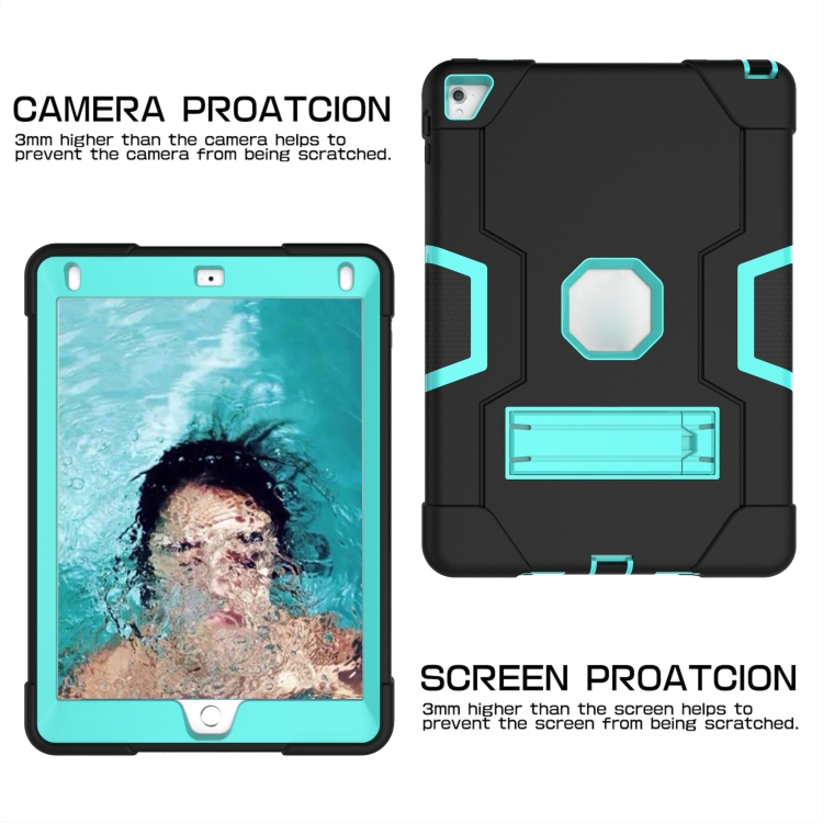 Funda Tablet Contraste Color Robot Silicone + PC para iPad 6 / iPad Pro 9.7 (2016) (Negro + Verde Menta)