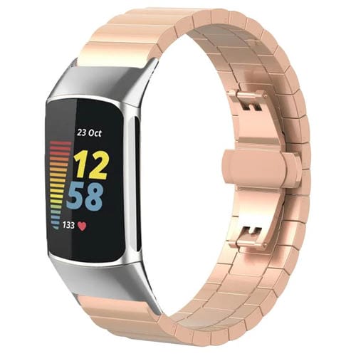 Correa de acero inoxidable macizo de bambú de una sola cuenta para Fitbit Charge 6/5 de 18 mm (oro rosa)