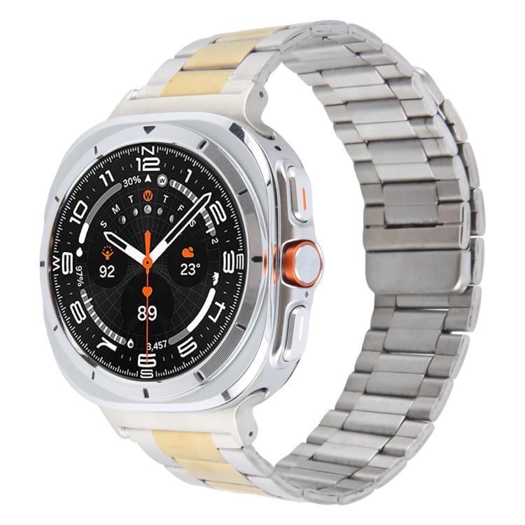 Correa de acero magnética de tres cuentas para Samsung Galaxy Watch Ultra de 47 mm (dorada y plateada)