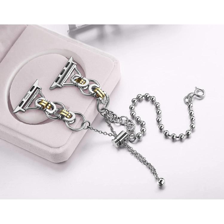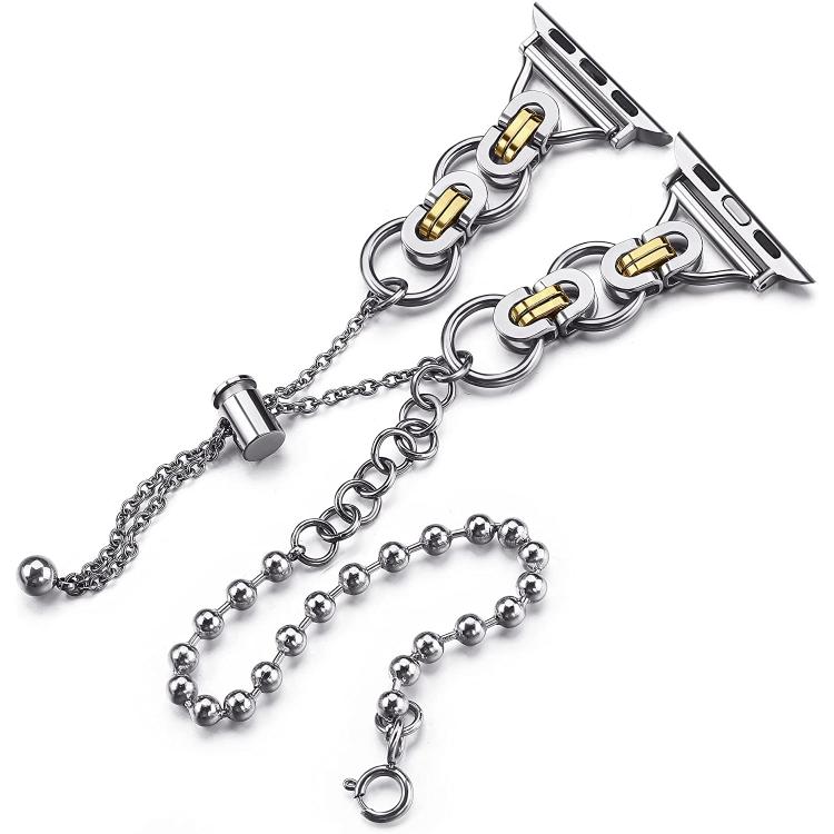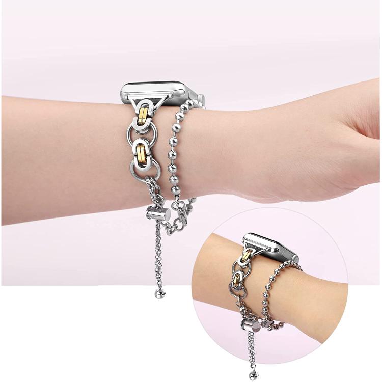 Correa de aleación de zinc con cadena de cuentas de doble círculo para Apple Watch de 46 mm, 49 mm, 45 mm y 44 mm (dorada)