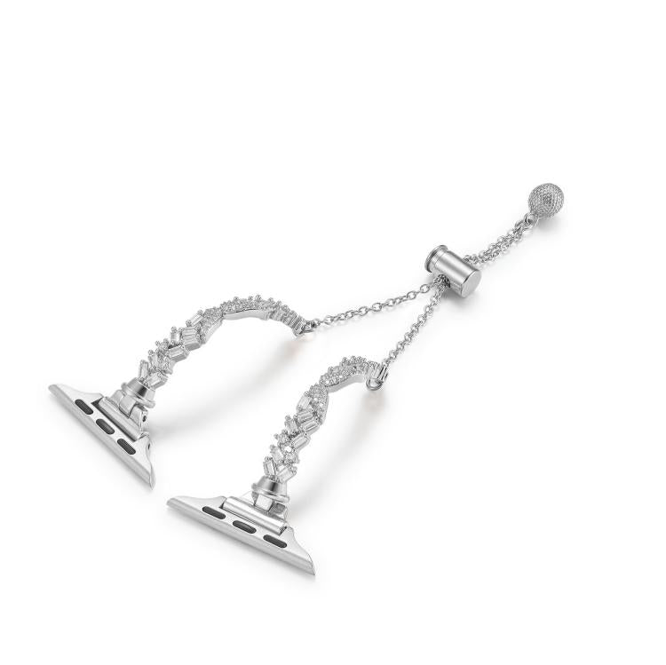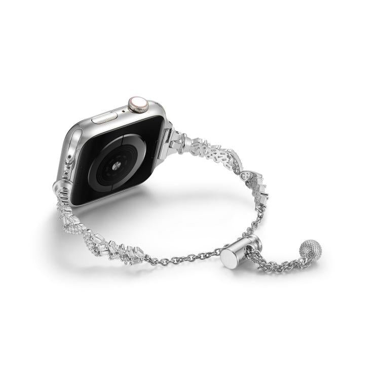 Correa de aleación de zinc con diamantes triturados y alas para Apple Watch de 46 mm, 49 mm, 45 mm y 44 mm (plateada)