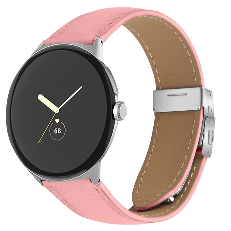 Correa de cuero con hebilla de tortuga plateada y textura de lichi de 41 mm para Google Pixel Watch 4 / 3 / 2 / 1 (rosa)