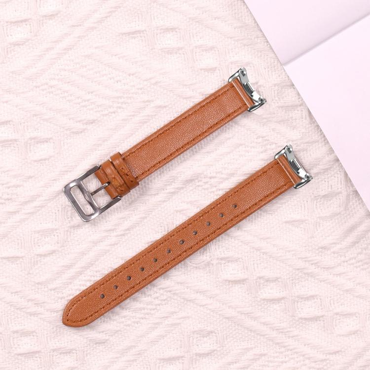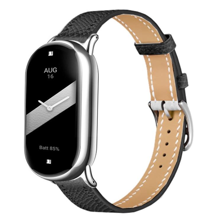 Correa de cuero con hebilla plateada fina para Xiaomi Smart Band 10/9/8 (textura de lichi negra)