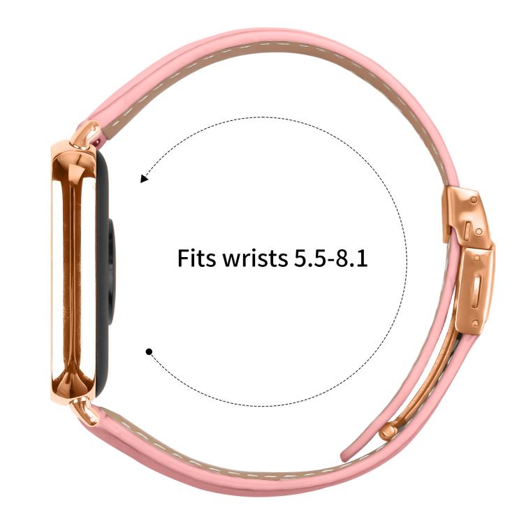 Correa de cuero con hebilla trasera de tortuga en oro rosa con textura de lichi para Xiaomi Smart Band 9 Pro y Redmi Watch 5 (rosa)