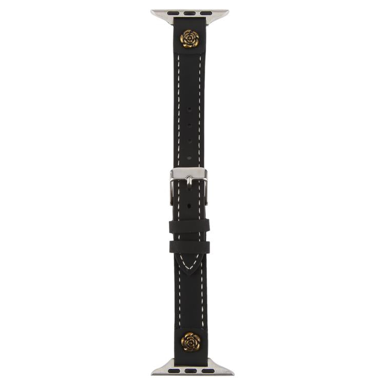Correa de cuero de microfibra con remaches y tacto camelia para Apple Watch de 46 mm, 49 mm, 45 mm y 44 mm (negra)