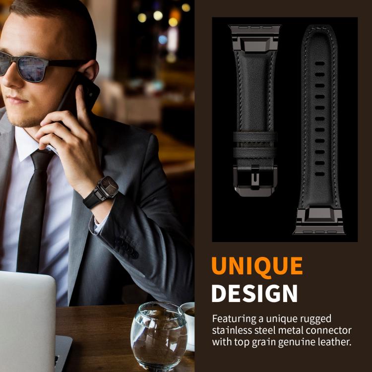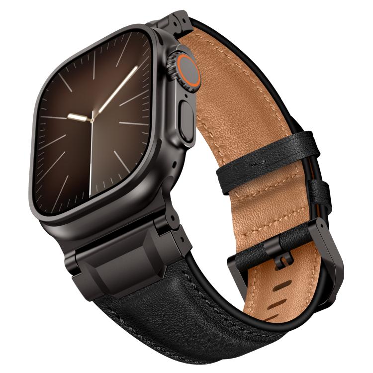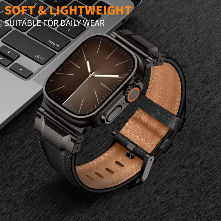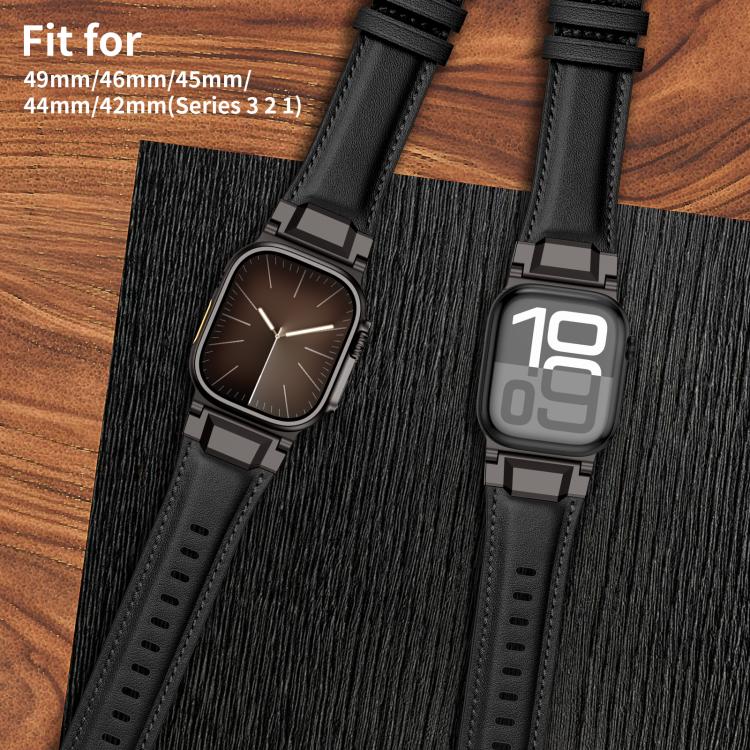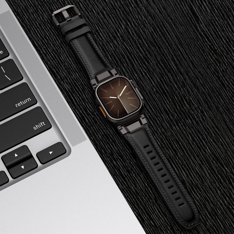 Correa de cuero estilo armadura para Apple Watch de 46 mm, 49 mm, 45 mm y 44 mm (hebilla negra de cuero napa negro).