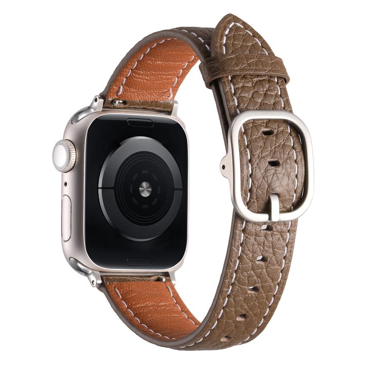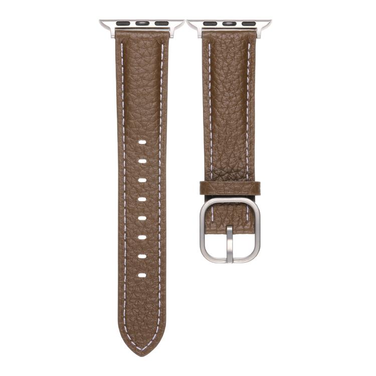 Correa de cuero genuino con textura de lichi y hebilla cuadrada para Apple Watch de 42 mm, 41 mm, 40 mm y 38 mm (marrón)