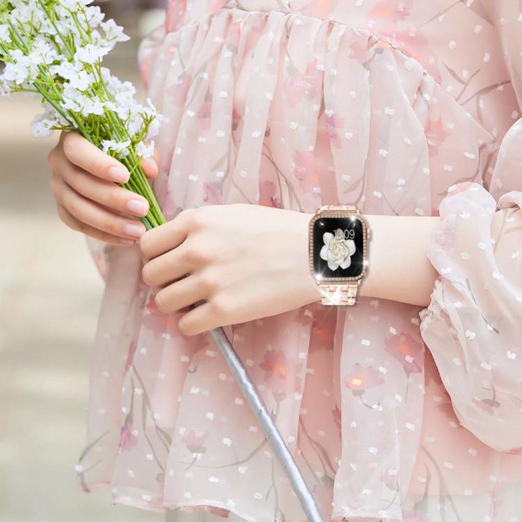 Correa de metal con diamantes brillantes y estuche para Apple Watch Series 44 mm xDfind (oro rosa)