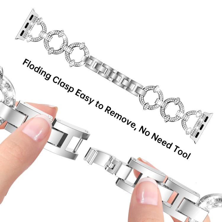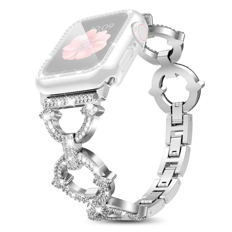 Correa de metal con diamantes en forma de O y película templada integrada para Apple Watch Series 40 mm xDfind (plateada)