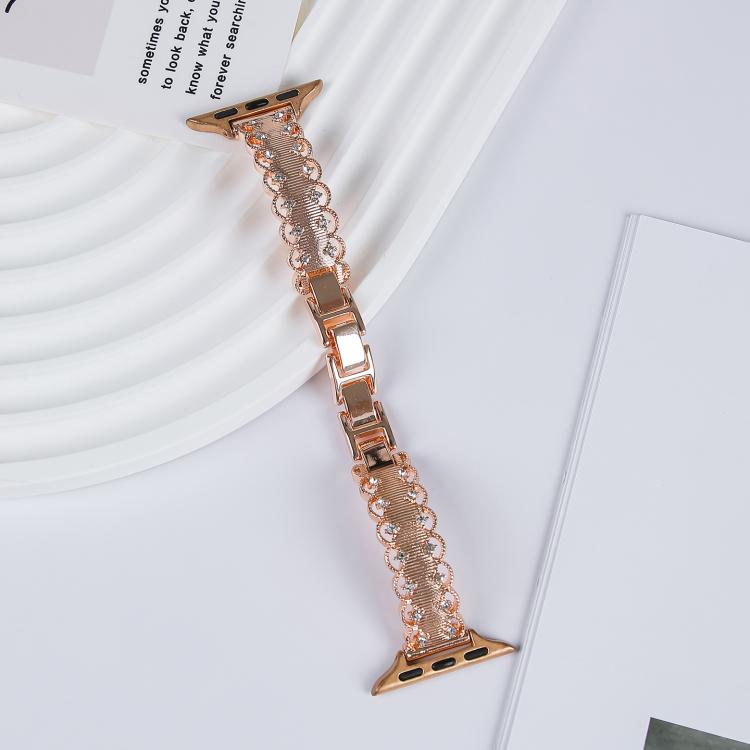 Correa de metal de aleación de diamante con bordes de encaje para Apple Watch de 46 mm, 49 mm, 45 mm y 44 mm (oro rosa)