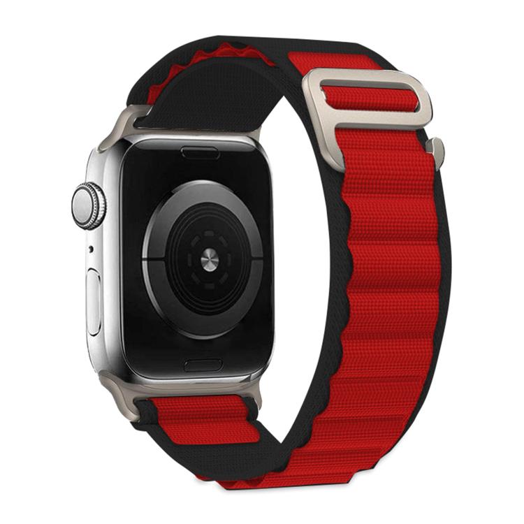 Correa de nailon con hebilla y película curva 3D para Apple Watch Series 10 de 42 mm (negro y rojo)