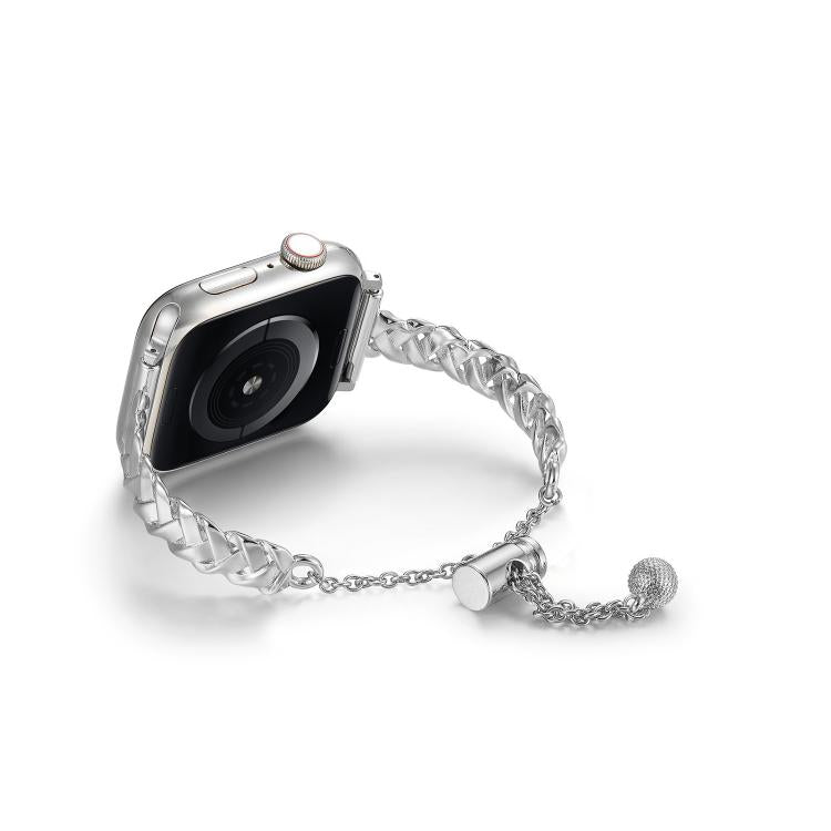 Correa de reloj de aleación de zinc brillante y metal trenzado para Apple Watch de 46 mm, 49 mm, 45 mm y 44 mm (plateada)