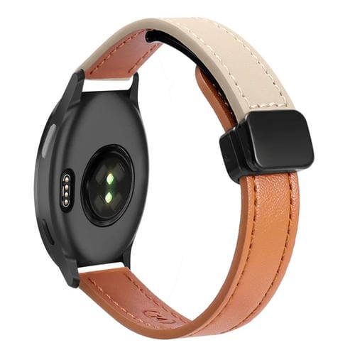 Correa de Reloj Cuero Microfibra 20mm con Hebilla Magnética para Garmin Active 5 (Naranja Aima y Albaricoque Crema)