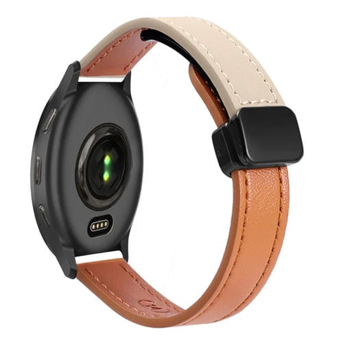 Correa de Reloj Cuero Microfibra 20mm con Hebilla Magnética para Garmin Venu 2 Plus (Naranja y Albaricoque)