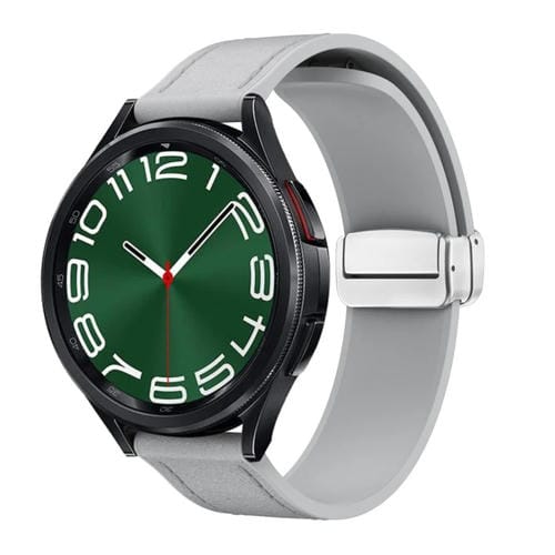 Correa de Reloj de Cuero y Silicona 20mm con Hebilla Magnética Plateada (Gris)