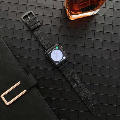 Correa de Reloj Cuero Genuino Cocodrilo y Avestruz para Apple Watch Series 8, 7, SE, 6, 5, 4, 3, 2, 1 (Negro)