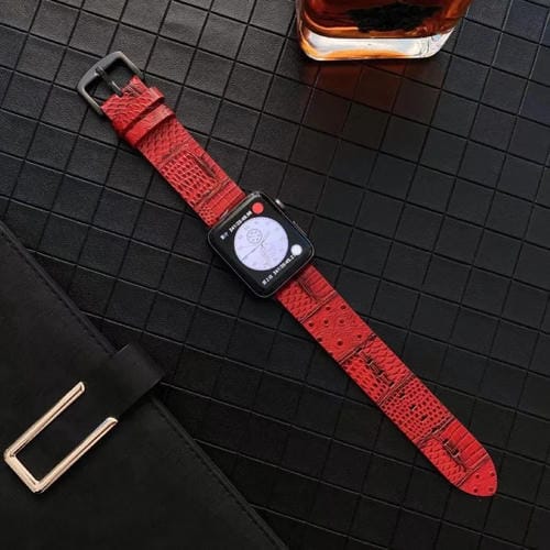 Correa de Reloj Cuero Genuino Cocodrilo y Avestruz para Apple Watch Series 8 7 SE 6 5 4 3 2 1 (Rojo)
