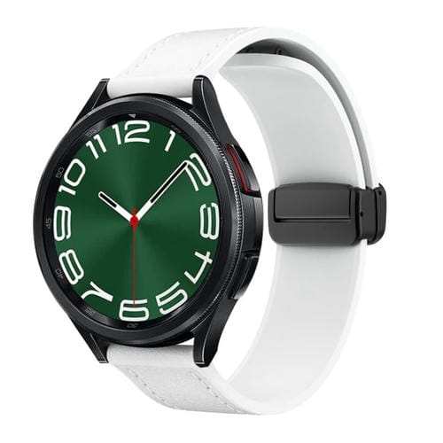Correa de Reloj de Cuero y Silicona 20mm con Hebilla Magnética (Blanca)