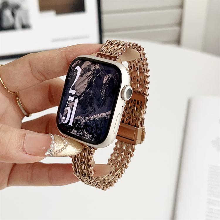 Correa de reloj de malla metálica de acero con cierre magnético delgado para Apple Watch de 46 mm / 49 mm / 45 mm / 44 mm (oro rosa)