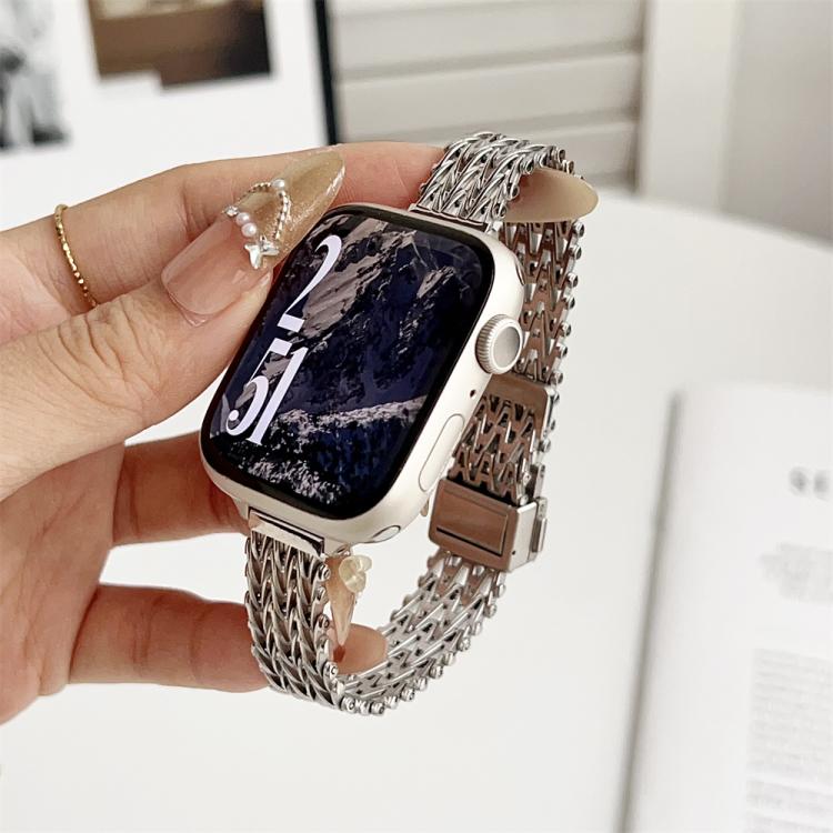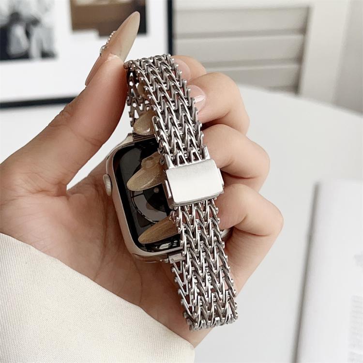 Correa de reloj de malla metálica de acero con cierre magnético delgado para Apple Watch de 46 mm / 49 mm / 45 mm / 44 mm (plateada)