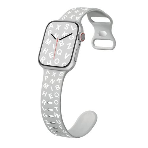 Correa de Silicona para Apple Watch Series 6 44mm con Hebilla de Mariposa y Letras (Gris y Blanco)