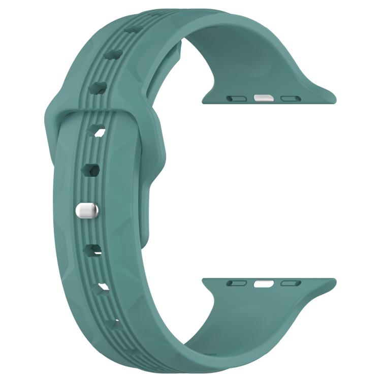 Correa de silicona con hebilla invertida de grano vertical para Apple Watch de 42 mm, 41 mm, 40 mm y 38 mm (verde aguja de pino)