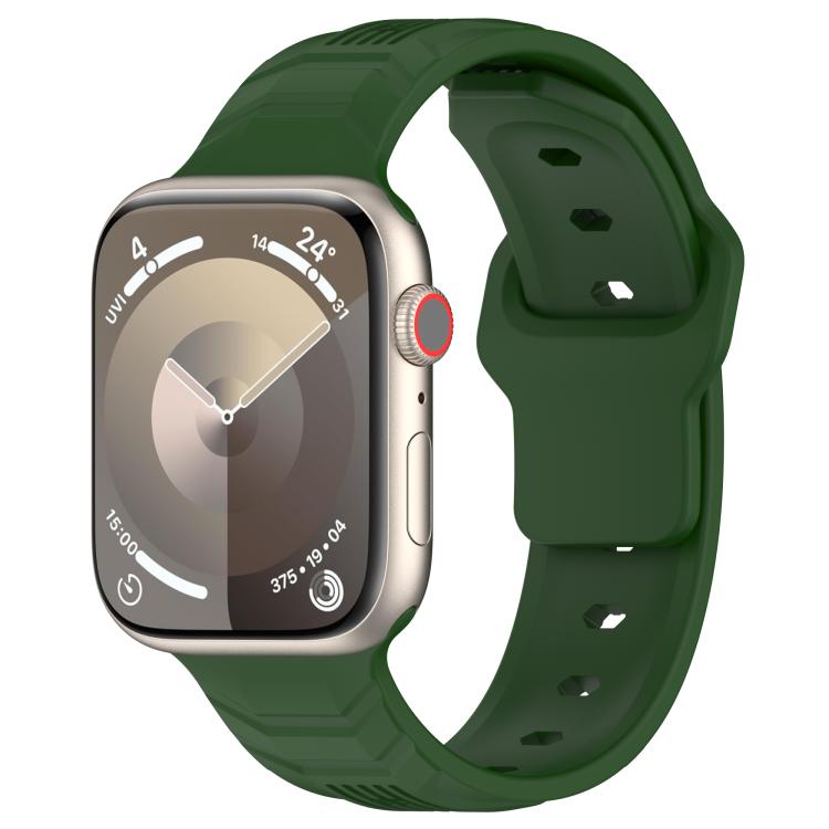 Correa de silicona con hebilla invertida de grano vertical para Apple Watch de 42 mm, 41 mm, 40 mm y 38 mm (verde militar)