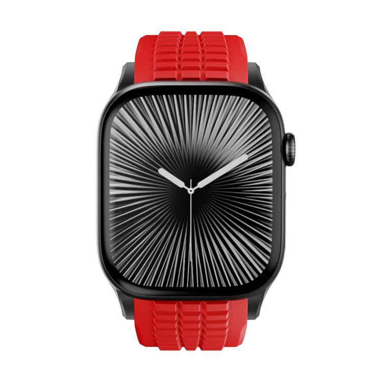 Correa de silicona con hebilla plegable y textura moleteada para Apple Watch de 46 mm, 49 mm, 45 mm y 44 mm (negro y rojo)