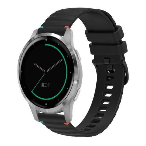 Correa de Silicona para Reloj Garmin Active S 18mm con Puntadas Onduladas y Puntos (Negra)