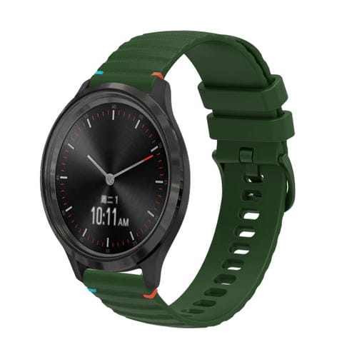 Correa de Silicona con Puntadas Onduladas y Puntos para Reloj Garmin Move 3 de 20mm (Verde Militar)