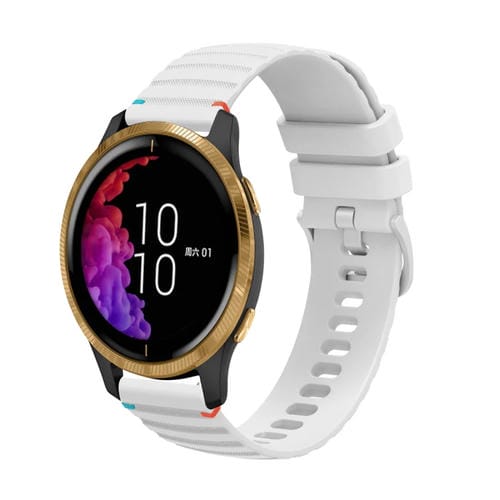 Correa de Silicona para Reloj Garmin Venu 20mm con Puntadas Onduladas y Puntos (Blanca)