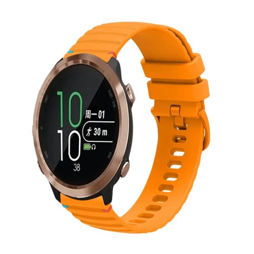 Correa de Silicona 20mm Garmin Forerunner 645 Puntadas Onduladas y Puntos (Amarillo Ámbar)