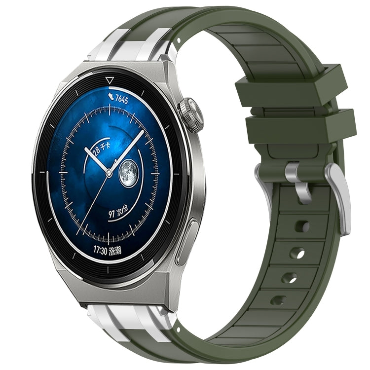 Correa de Silicona para Reloj Huawei Watch GT3 Pro 46mm 22mm con Hebilla Plateada (Verde Oliva)