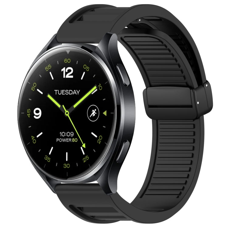 Correa de silicona para reloj Xiaomi Watch 2 con hebilla magnética y ventana ciega de 22 mm (negra)