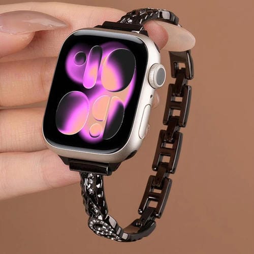 Correa fina de acero inoxidable con diamantes para Apple Watch de 42, 44, 45, 46 y 49 mm (negro)
