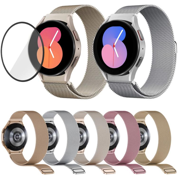 Correa magnética milanesa de acero inoxidable para Samsung Galaxy Watch5 de 44 mm con película curva 3D (dorado retro)