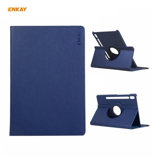 Funda para Samsung Galaxy Tab S8 y Tab S7 11.0 T870/T875 Enk-8012 360° Rotación Textura Litchi PU con Titular y Función Sueño/Despertador (Azul Oscuro)