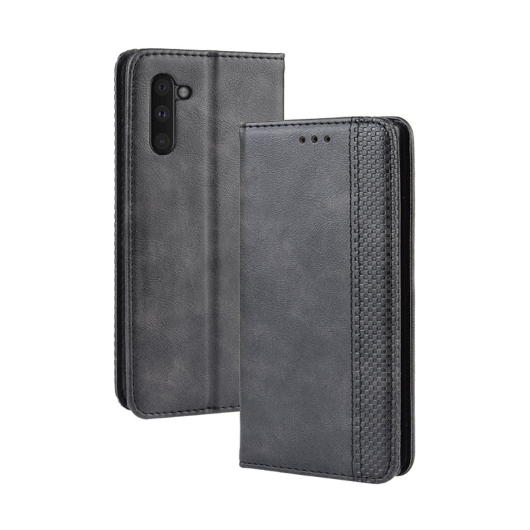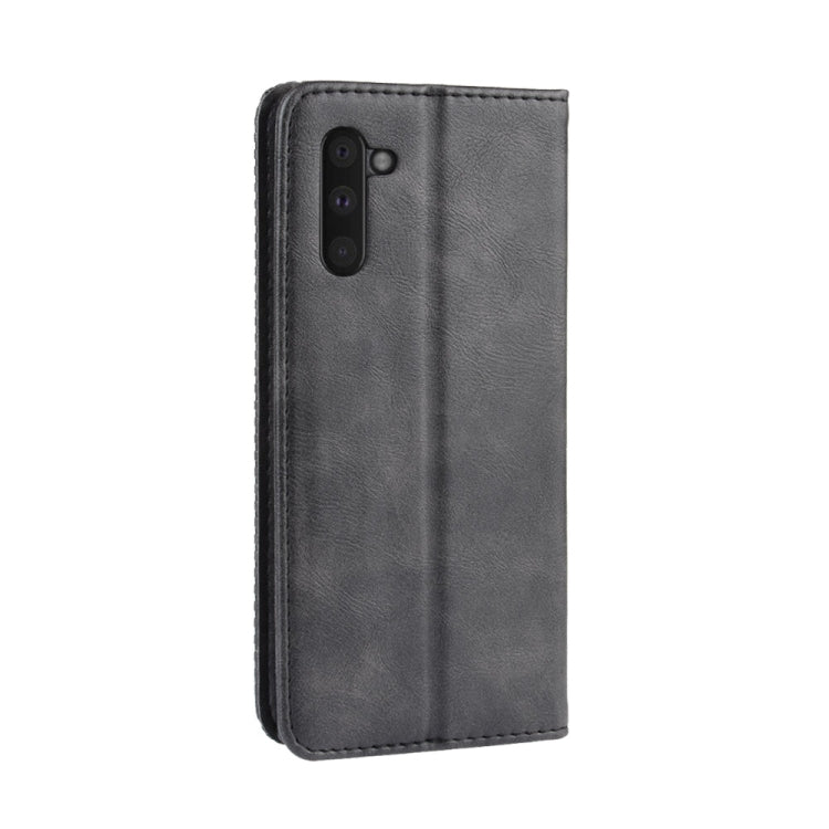 Estuche de Cuero Galaxy Note 10 Tapa Horizontal Textura Caballo Loco Hebilla Magnética Soporte Ranuras Tarjetas Marco Fotos (Negro)