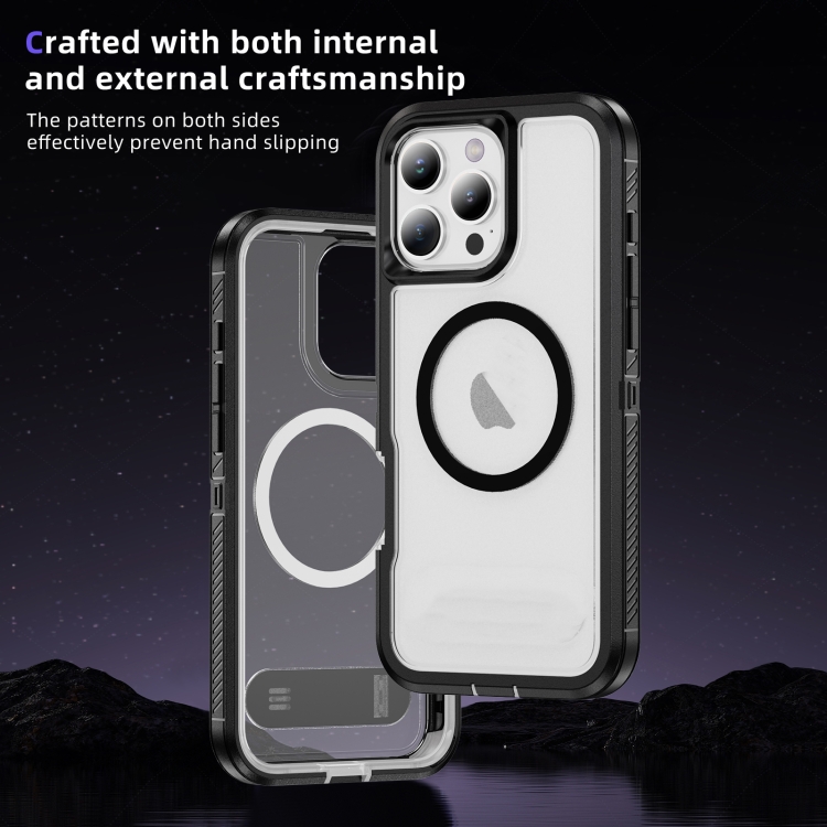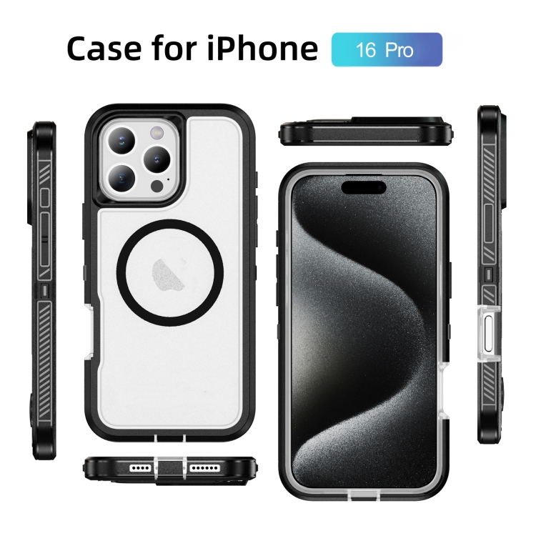 Estuche para Teléfono con Anillo Magnético Magsafe para iPhone 16 Pro (Negro y Transparente)